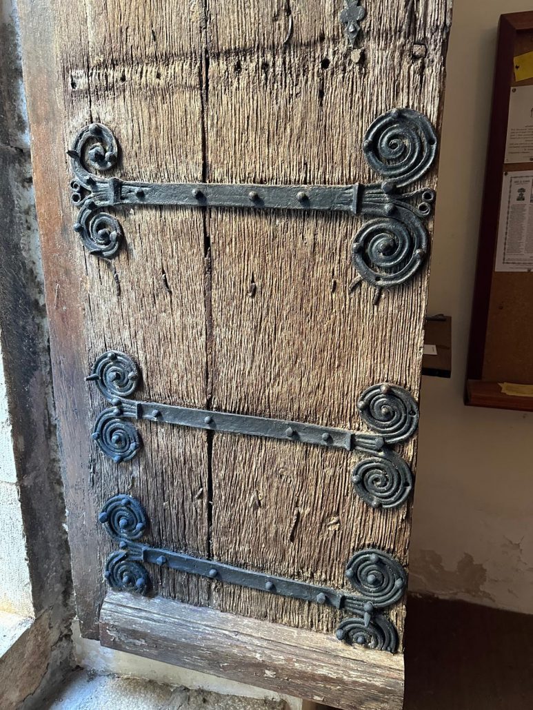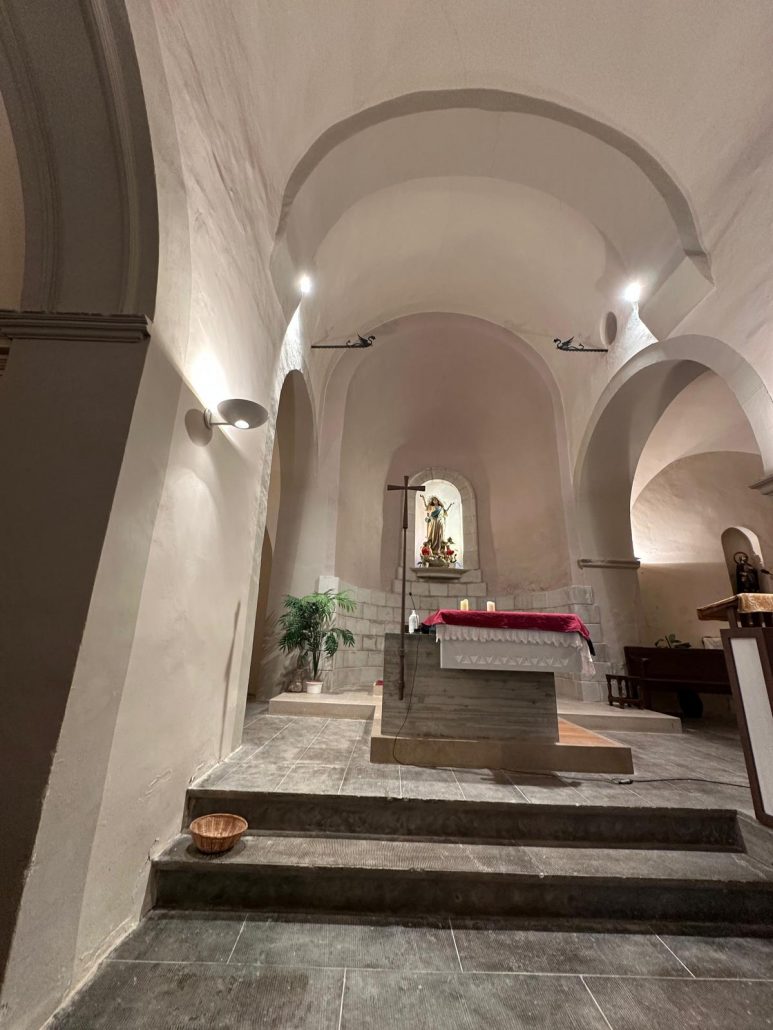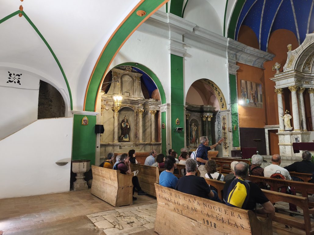 A l’església de Sant Llorenç, que va morir cremat en una graella, vam poder veure la porta d’entrada pintada en color vermell, com la sang del màrtir, segons ens va dir la Marta d’Espinavessa, que ens va obrir l’església i ens en va explicar alguns detalls. A l’interior, vam poder admirar el bon estat de conservació dels retaules, les columnates i les pintures de les parets.