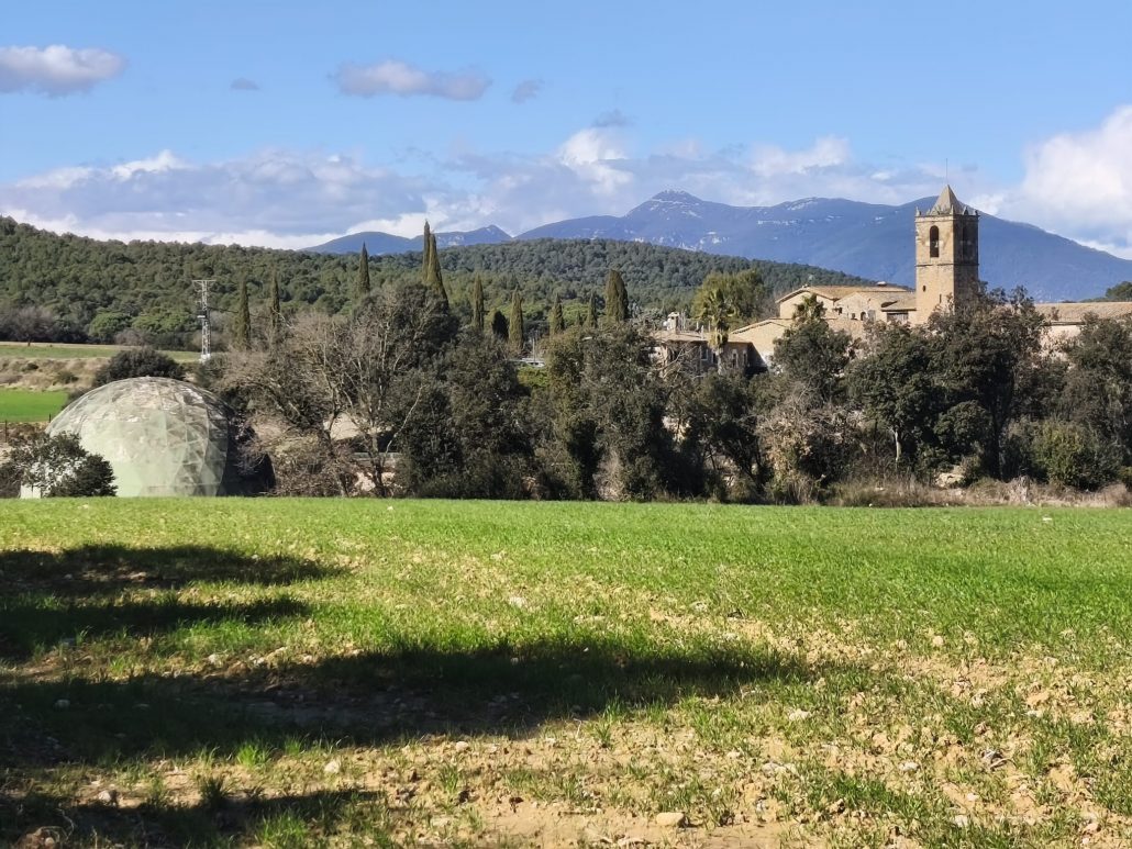 Vam tornar al camí i al cap de poca estona vam passar un pont per sobre del rec de la Fontsanta, on vam veure un sorprenent salt. Un xic més enllà vam observar una de les cúpules que havia estat a la base militar del Pení i que ara es troba dins de la propietat de Can Pardala o Can Bramon (antiga casa Masó). En poca estona ja vam tornar a ser al punt de sortida.