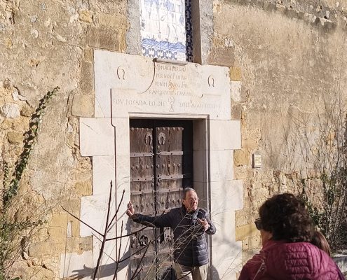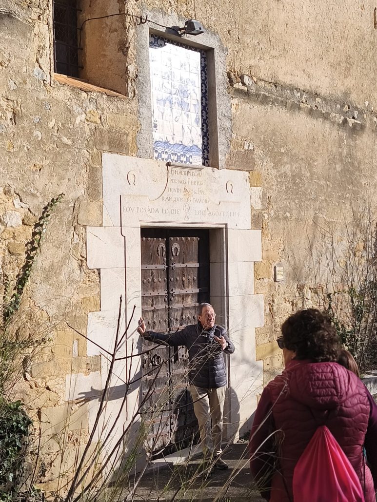 Tot seguit, vam anar cap a la rectoria de l’església de Sant Martí, on en Rafel Ponsatí ens va explicar la vida i obra de Mn. Baldiri Reixach, que hi va viure 51 anys. També vam anar fins a la porta de l’església, on en Rafel va seguir amb les explicacions sobre les remodelacions que hi va fer fer Mn. Baldiri Reixach, com ara la mateixa porta, amb el mosaic superior, el forrellat de cap de drac…