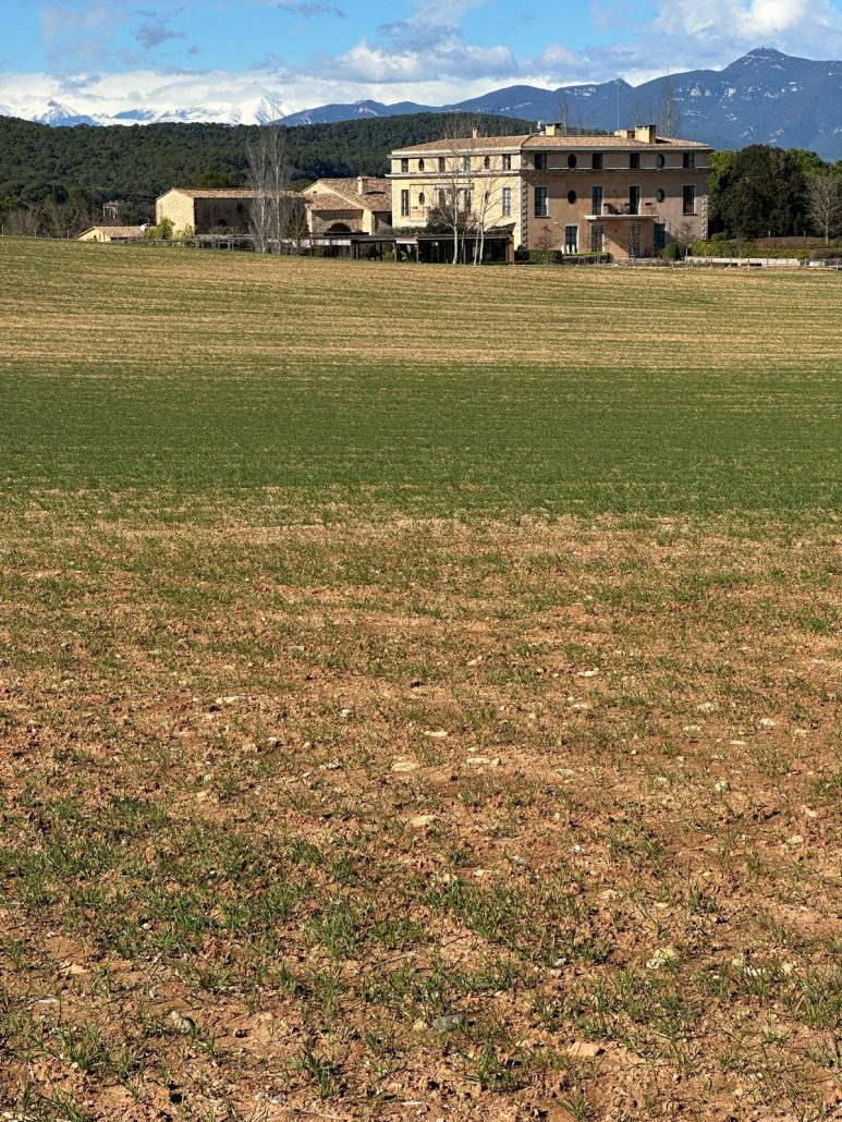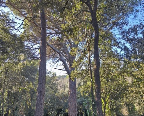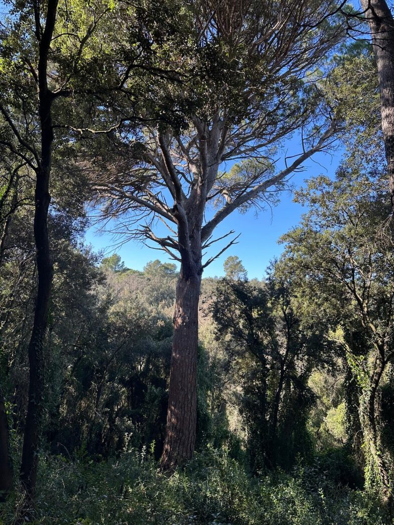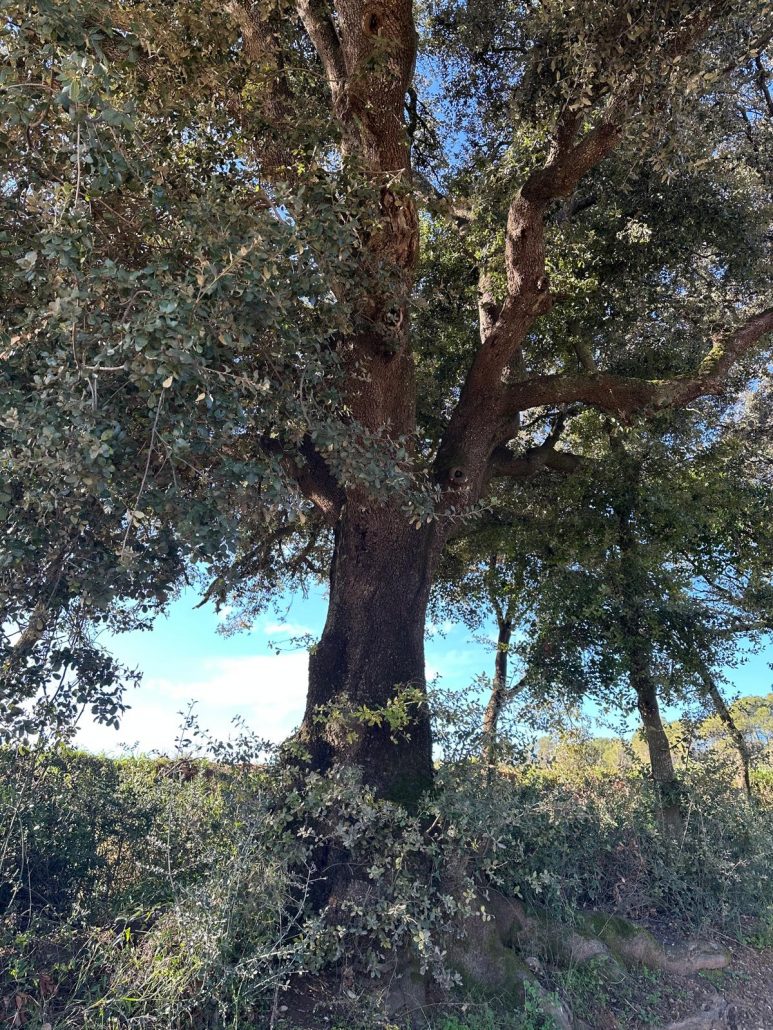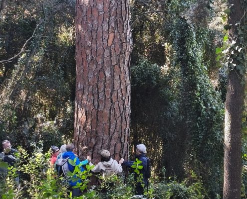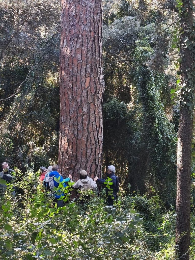 De lluny, vam veure, al mig de la plana, Can Motes, actualment hotel Casa Anamaria. Vam entrar dins la finca per veure el Pi Gros d’en Motes. Van ser necessàries tres persones per abraçar tot el perímetre de la seva soca.