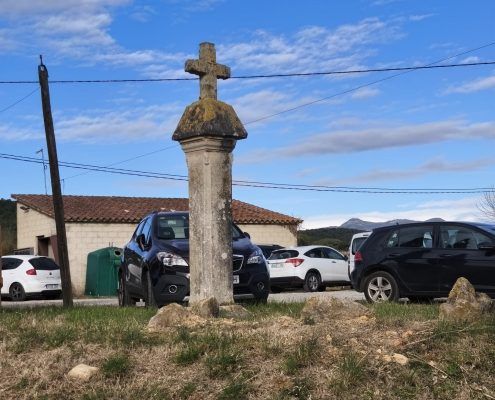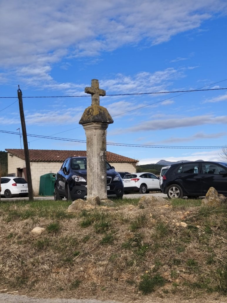 En un cantó de la plaça vam observar una creu de terme d’estil renaixentista, on hi ha esculpida la imatge de Jesús crucificat i al revers, la de la Mare de Déu amb el Nen Jesús en braços. S’hi pot llegir la inscripció “SEBASTIÀ M 1602”.