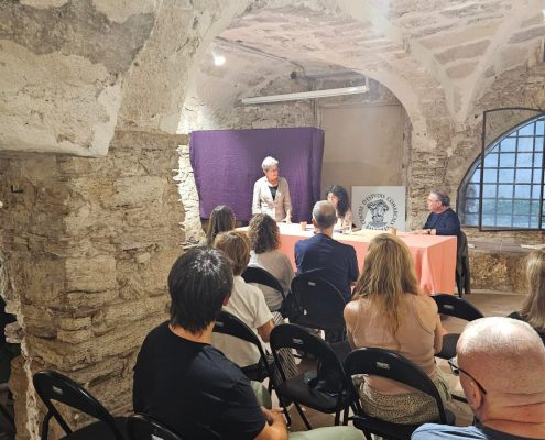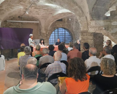 El 19 de setembre vam reprendre el Cicle : “El Divendres, parlem” amb una conferència-presentació del llibre La lírica trobadoresca medieval del doctor Antoni Rossell. Va ser una vetllada molt interessant. La professora Marissa Planas en va conduir la presentació i va anar formulant preguntes a l’autor seguint les pautes del llibre: amor cortès, l’emoció, la música…