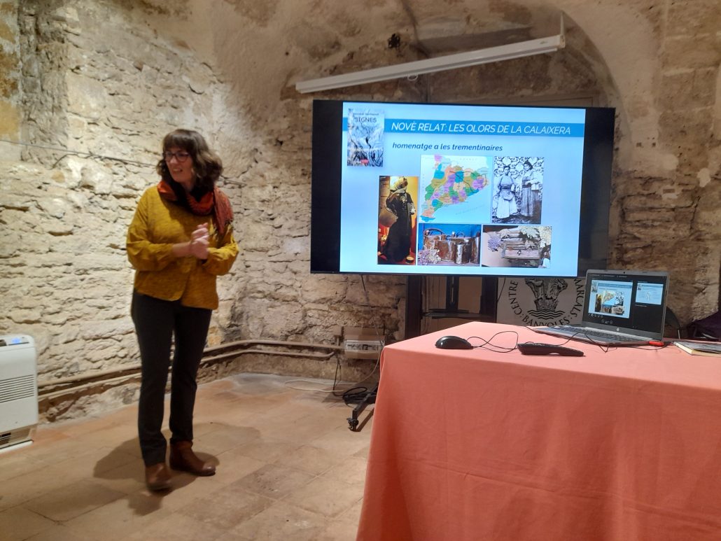 El migdia del dissabte 29 de novembre al Tint, Genoveva Montserrat, sòcia del Centre d’Estudis Comarcals i assistent habitual a les sortides i xerrades que organitzem, va fer la presentació de la seva darrera publicació, el recull de relats breus Signes. L’autora, d’una forma molt amena i treballada, va anar-nos explicant detalls, curiositats i motivacions en relació a cadascun dels nou escrits inclosos en el llibre. Així, vam podem entendre com és la vida d’una persona sinestèsica o a què es dediquen els rúrex. També vam saber que alguns d’aquests escrits són petits homenatges: als parlars populars (amb les seves dites i frases fetes) o a les trementinaires en dos dels casos. Sobretot, però, els que encara no l’havien llegit, van acabar amb moltes ganes d’endinsar-se en aquest conjunt de relats de temàtiques molt diferents, però tots interessants, originals i ben escrits.